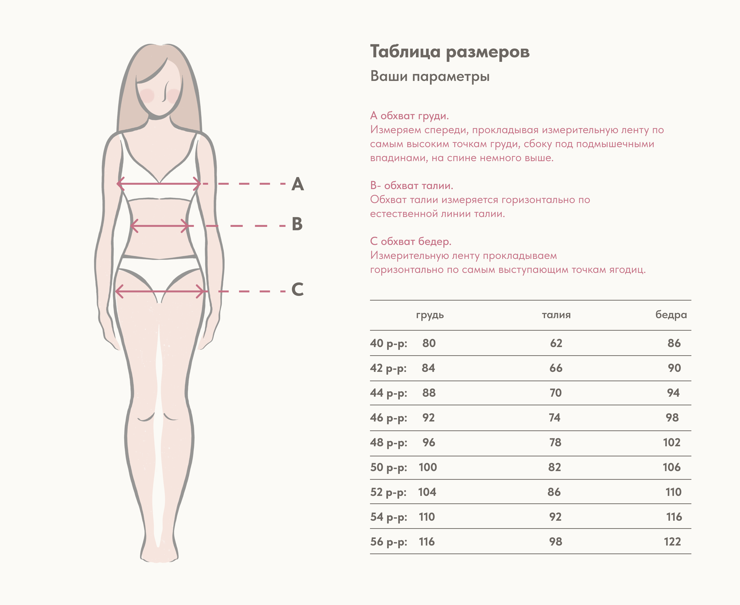 Прикрепляем нашу размерную сетку. Указаны параметры человека. Советуем выбирать размер именно по Вашим параметрам, т.к. свободу облегания мы уже заложили в лекала.