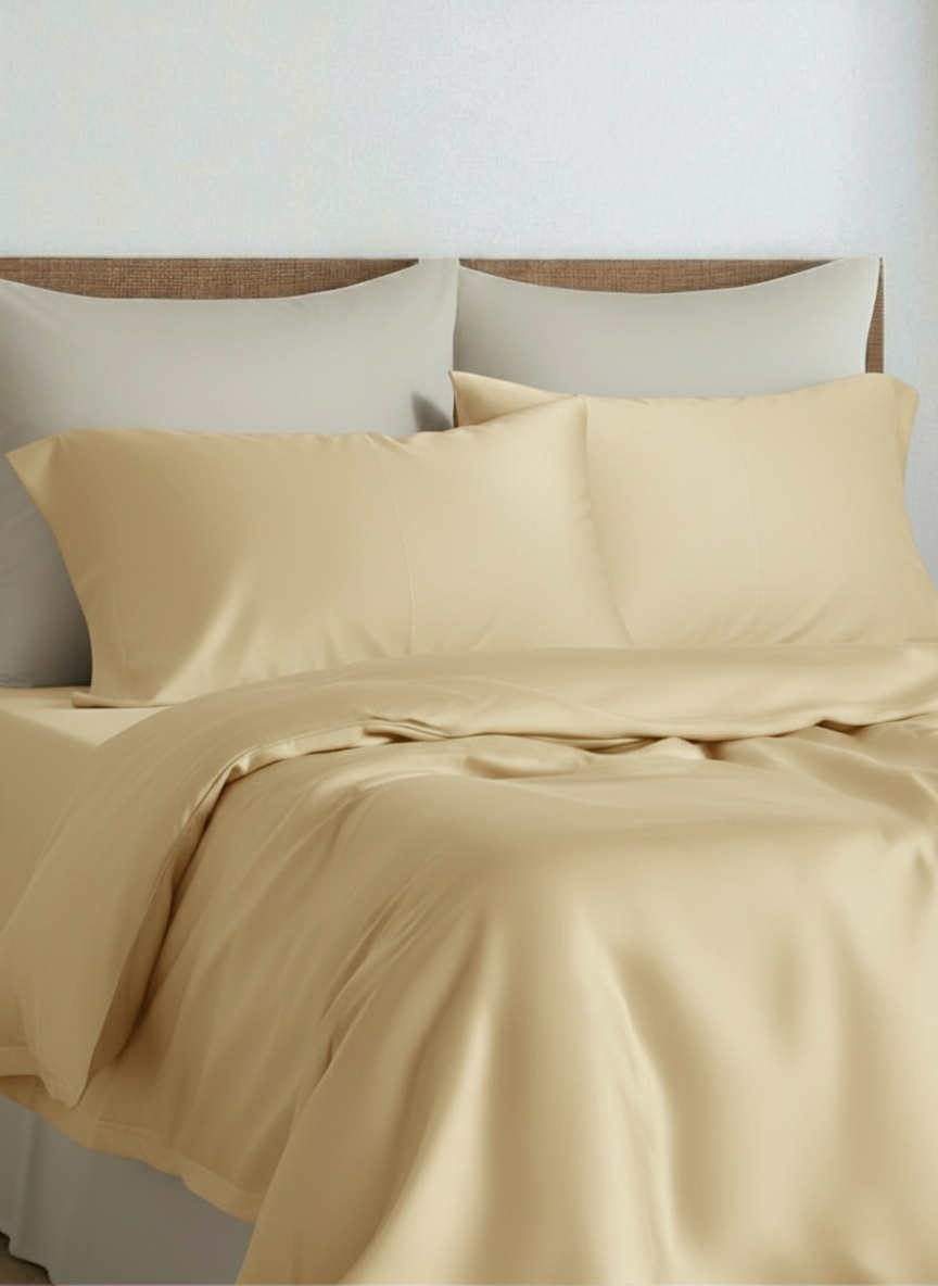 Ткань из натурального волокна эвкалипта, отличается своей мягкостью и прочностью, не теряет яркость цвета и не электризуется. Отлично пропускает воздух и впитывает влагу, имеет гладкую, шелковистую поверхность. Стоимость тканей со сложным переплетением нитей выше, но их практичность и износостойкость (до трёхсот стирок без потери свойств), делает выгодным ваш выбор в пользу качества.