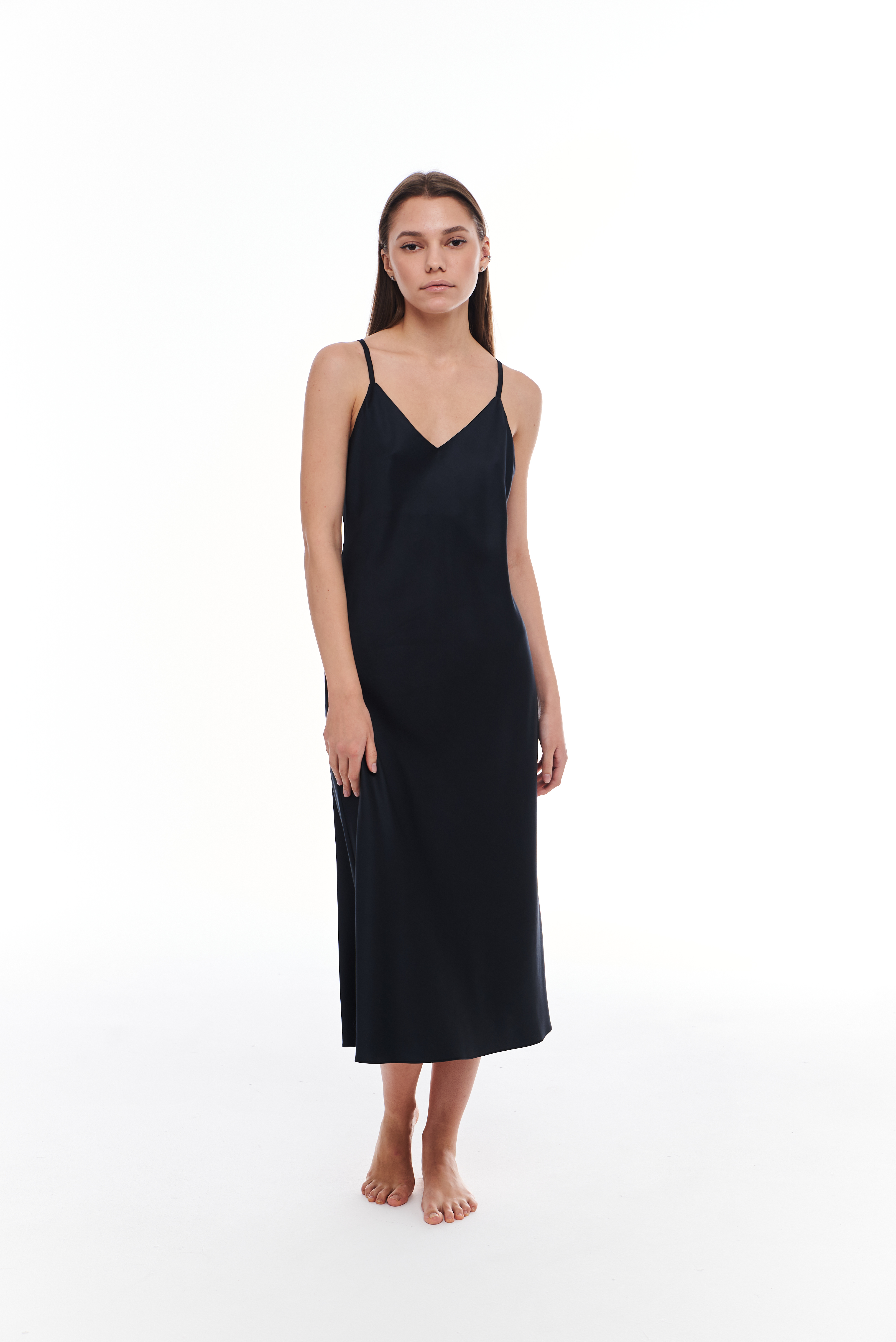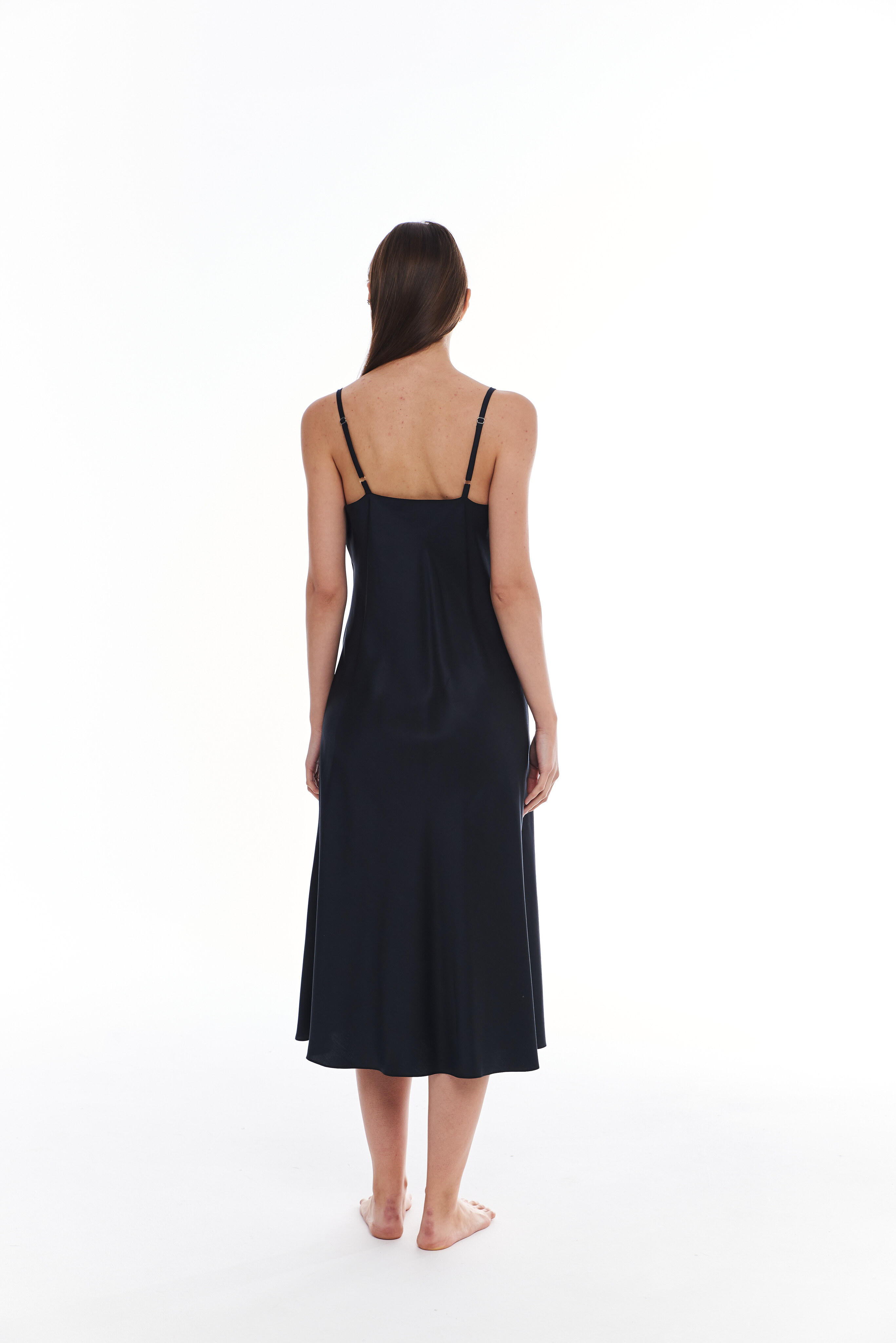 Сорочка (комбинация) на тонких бретелях. Бретели регулируются. Комбинация выполнена "по косой" для наибольшего комфорта в носке. Сорочка с дополнительной подкладкой, чтобы избежать просветов в области груди. Длина комбинации на фото 115 см.
